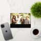 Tarjeta de Navidad con foto donde la imagen puede ser personalizada con la tuya. El texto está en holograma real y se puede elegir en dorado, plateado o rosa. 'Feliz Navidad' es fijo y el resto del texto se puede personalizar con apellido y nombres.