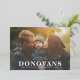 Esta elegante tarjeta de Navidad presenta de manera prominente el apellido de su familia sobre una foto de sangrado completo acentuada con copos de nieve de auténtico pan de oro. Agregue su boletín familiar de fiestas a la parte trasera, o personalice y elimine el texto para un patrón de copos de nieve.