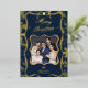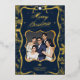 Celebre la magia de la temporada con esta sofisticada tarjeta personalizada de Navidad de los cerezos que presenta un elegante diseño azul marino y dorado brillante. La tarjeta muestra tu foto enmarcada en un brillante borde dorado, con adornos festivos, estrellas brillantes y detalles de vegetación de temporada. El mensaje personalizado "Feliz Navidad" brilla en lujosa caligrafía de oro, haciendo de esta tarjeta la manera perfecta de difundir alegría navideña a sus seres queridos. Añada su nombre familiar y foto especial para una persona única que sus amigos y familiares apreciarán en los años venideros. Ideal para: Saludos de vacaciones Tarjetas de Navidad Familiares Manejo personalizado para los seres queridos ¡Dejen que la alegría y el estilo de su familia brillen con este diseño de tarjetas de Navidades de primera calidad y atemporal!