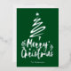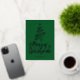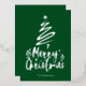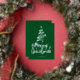 Relieve metalizado plateado Feliz Navidad estilo de escritura decorativo con un contorno de un árbol de Navidad y una estrella encima. Esta tarjeta de Navidad está diseñada para que puedas cambiar el color del fondo e introducir también el nombre de tu familia.