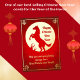 Nuestra tarjeta de Relieve metalizado china para el año nuevo del caballo muestra el contorno de un caballo rojo frente a una luna dorada. La imagen está impresa en un fondo rojo de explosión de sol que está rodeado por un borde dorado. Todos los textos son personalizables para un saludo más personalizado.