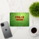 Esta tarjeta en español tiene un fondo verde, una dispersión de estrellas, y dice "Feliz navidad" en la parte delantera. La 'i' de Feliz es una vela que brilla con fuerza. El mensaje en Relieve metalizado de oro "Cristina y Javier" puede ser editado para su propio saludo personal. En la parte de atrás hay una dispersión similar de estrellas, y texto listo para que usted lo personalize con su propio mensaje. (O puede usar el predeterminado "¡Y próspero año nuevo!" = "¡Y un feliz año nuevo!")