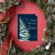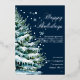 Envíe un refinado saludo de temporada con esta lujosa tarjeta de vacaciones plana, que incluye un árbol de color de agua cubierta de nieve de color verde sobre un fondo azul oscuro. "Felices Fiestas" brilla en un guión elegante, representado en Relieve metalizado metálico para un toque de sofisticación. Personalizar el verso, el nombre comercial y el año utilizando campos de texto editables en la coordinación de fuentes. Perfecto para regalos corporativos de gama alta, apreciación de clientes o correspondencia de vacaciones ejecutivas. Un diseño atemporal para celebrar unas vacaciones profesionales.