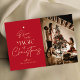 Difunde la alegría festiva con una tarjeta de bienvenida personalizada para Navidades de fotografía de familia. Esta tarjeta de vacaciones de caligrafía incluye espacio para una gran foto familiar y su nombre familiar. El verdadero diseño de la tipografía de Relieve metalizado complementa perfectamente esta tarjeta de Feliz Navidad y el rico fondo rojo aporta ese espíritu Navidad.