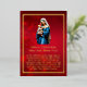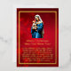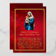 Nuestra tarjeta de Relieve metalizado Madre María y Niño Jesús muestra la imagen de María sujetando al bebé Jesús con amor en sus brazos colocados sobre un fondo rojo con copos de nieve y rodeados por un borde de Relieve metalizado dorado. Todos los textos están impresos en Relieve metalizado oro real y son personalizable si quieres insertar tu propio saludo personalizado.