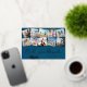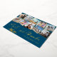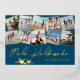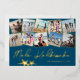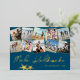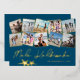 Elegante tarjeta de vacaciones hawaiana con papel de aluminio dorado que presenta un fondo azul profundo y elegante, un collage de 10 fotos cuadradas que capturan recuerdos a lo largo del año, dos estrellas de mar, los saludos de la temporada 'mele kalikimaka', nombre y año.