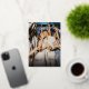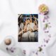 Un elegante diseño Navidad con "Casado y Cereza" en un guión de caligrafía con Relieve metalizado dorado. El delgado marco y el nombre de la pareja también está en Relieve metalizado dorado. (Se puede elegir entre diferentes Relieves metalizados de color). El reverso tiene un marcador de posición para otra imagen y un mensaje personalizado, el oro claro en el amor es sólo un color (no hay Relieve metalizado en el reverso).
