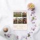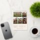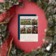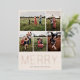 Relieve metalizado de oro rosa moderno y elegante "MERRY", tarjeta de collage de fotos de vacaciones. La tarjeta contiene 5 fotos en la parte delantera con múltiples líneas para el mensaje de su personalizado, nombres y un año atrás de la tarjeta.