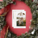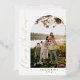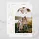 Esta tarjeta de vacaciones presenta un diseño simple y elegante y una foto arqueada con texto en lámina dorada. Esta hermosa tarjeta moderna de Navidad minimalista permite subir una sección con tu propia imagen perfecta al frente y atrás.