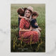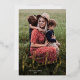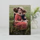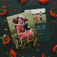 Tarjeta de vacaciones con lámina de oro y guión moderno Felices Fiestas. En el reverso hay una segunda foto y un mensaje sincero de la familia. Haga clic en personalizar para personalizar este diseño con sus fotos y detalles.