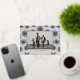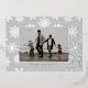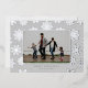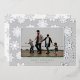 Copo de nieve prensados con lámina plateada que cubren el fondo de la tarjeta con una foto colocada en el medio. Diseño invernal elegante; adecuado para felicitaciones de Navidad.