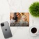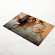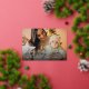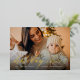 "Cheque de feriado" aparece en la escritura de caligrafía de Relieve metalizado dorado, colocada sobre una foto horizontal o orientada al paisaje. Personalizar este hermoso diseño de tarjetas de Navidades con tu nombre familiar y el año a lo largo del fondo.