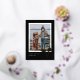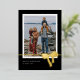 Tarjeta de vacaciones de hoja de oro con foto simple y arco audaz. Haga clic en el botón de edición para agregar su foto y detalles.