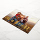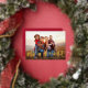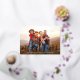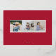 La tarjeta fotográfica festiva incluye tu foto horizontal o paisajística favorita en todo el sangrado, con "todo es brillante" colocado en la tipografía de brochas con letras de Relieve metalizado dorado. Personalice la parte delantera de la tarjeta con sus nombres y mensajes breves de vacaciones (mostrados con "Feliz Navidad"), y agregue tres fotos adicionales a la parte posterior en un diseño de collage sobre un fondo rojo vibrante, junto con un mensaje personal personalizado. Para una parte posterior en blanco, simplemente elimine las plantillas de fotos y la capa de alfombra blanca.