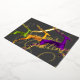 Tarjeta Festiva Con Relieve Metalizado Tres ciervos saltarines gris lima naranja morado