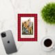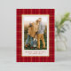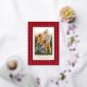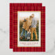 La tarjeta navideña de Relieve metalizado fotográfico Red Classic Navidades Plaid presenta una manta clásica y tradicional con detalles de Relieve metalizado dorado y tres fotos.