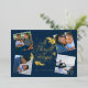 Una tarjeta de vacaciones de Relieve metalizado real y religiosa moderna con la frase "Una emoción de la esperanza" en Relieve metalizado en el centro sobre un fondo marino, rodeada por 4 de tus fotos favoritas. Al revés, se observa un patrón de hojas de pino y hojas de color verde y marino sobre un fondo de crema.