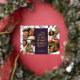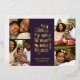 Esta elegante tarjeta fotográfica de Navidades colgantes de vacaciones cuenta con 4 plantillas de fotos y una tipografía moderna que dice: "Un emoto de esperanza, el mundo cansado se alegra". La parte posterior de la tarjeta contiene un patrón similar de bayas, hojas y brotes de pino en púrpura de ciruela. ¡Fácil de personalizar!