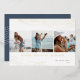 Envíe saludos de vacaciones al estilo de la moda con estas elegantes y modernas tarjetas de collage con tres fotos cuadradas alineadas una al lado de la otra y adornadas con adornos de Relieve metalizado dorado en línea en la parte superior e inferior. Bajo las letras modernas de Relieve metalizado dorado aparece el nombre de la familia y el año en la esquina inferior derecha. Un estilo minimalista en colores de tendencia para los saludos de sus Navidades 2022. Perfecto para fotos de vacaciones en la playa o enviar saludos de vacaciones desde climas cálidos!