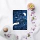 Bellamente ilustrada tarjeta celestial "pensando en ti" con luna del primer trimestre y polvo de estrella. Para los buscadores espirituales que aman conectarse con energía lunar. Relieve metalizado plateado sobre detalles delicados. Manden el amor, hagan una buena huella cardíaca en este mundo. Puede ajustar o eliminar todos los textos. Obra original de Marketa Stengl.