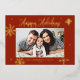 Felices fiestas! Envíe cálidos deseos a la familia y amigos con esta tarjeta de vacaciones de Relieve metalizado dorado. Cuenta con copos de nieve extravagantes y caligrafía moderna. Personalice esta tarjeta de vacaciones con fotos agregando sus propios detalles. Esta tarjeta fotográfica de copos de nieve para vacaciones está disponible en otros colores y material de cartón.