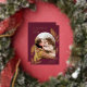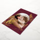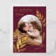 Moda y elegante diseño de tarjetas de vacaciones con una sola foto vertical o retrato en un diseño único en arcos, adornado con un follaje botánico finamente detallado en Relieve metalizado dorado. "Felices Fiestas" aparece en la parte superior izquierda, con el nombre de su familia en la parte inferior derecha. Una elección refinada inspirada en la naturaleza para sus saludos Navidades 2022.
