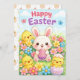 Tarjeta Festiva Conejito de Pascua y Pollitos Lindos | Felices Pas