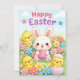 Tarjeta Festiva Conejito de Pascua y pollitos lindos | Feliz Pascu