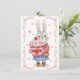 Tarjeta Festiva Conejito Lindo Sosteniendo Cupcake Rosa