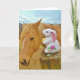 Tarjeta Festiva Conejo blanco y caballo amarillo rubio