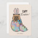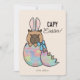 Tarjeta de vacaciones de Pascua de Huevo de Abundancia Capibara Personalizado lindo capibara con orejas de conejito que eclipsan el diseño de la tarjeta de pascua de huevo colorida con expresión "Capy Easter". Utilice la herramienta de diseño para editar las fuentes y los colores para crear su propio diseño único.