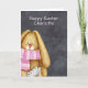 Conejito de Pascua en una bufanda rosa y sosteniendo un huevo de Pascua - presentado en un fondo negro de color agua que hace que la imagen sea realmente pop - tarjeta de vacaciones de Ricaso que puedes agregar tu propio texto a