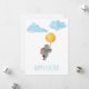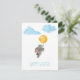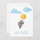 Conejito adorable en acuarela con globo, nubes tarjeta postal de vacaciones de Pascua.