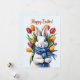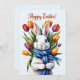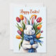 Tarjeta Festiva Conejo de Pascua feliz y flores de tulipán