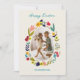 Celebre la Pascua con un toque alegre y personal utilizando esta encantadora tarjeta de felicitación floral de Pascua. Una colorida corona de flores primaverales dibujadas a mano rodea la foto de su familia favorita, creando un diseño cálido y alegre que captura perfectamente el espíritu de la temporada. La ilustración botánica juguetona presenta flores brillantes y vegetación fresca, inspirada en jardines primaverales florecientes.