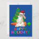 Un conejo divertido con el sombrero de Santa. Una zanahoria naranja y un árbol de Navidad decorado detrás de la adorable mascota. Texto colorido "Felices Fiestas" debajo de la imagen. El texto personalizable en la parte posterior. Puedes cambiar o eliminar el texto como desees. Por favor, use el botón "Editar diseño" para reposicionar la imagen en el producto o para cambiar el color del fondo, la fuente, el color de la fuente o para agregar algún texto propio. Simplemente personalice y compre uno, ¡y sea feliz!