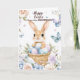 Tarjeta Festiva Conejo en la cesta con huevos de Pascua