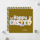 Difunde alegría y ambiente festivo esta temporada con esta adorable tarjeta de "Feliz Pascua"! Con un diseño juguetón con lunares pastel, rayas y orejas de conejo incorporadas en la letra "PASCUA" en negrita y colorida sobre fondo marrón, esta tarjeta captura la fantasía de la Pascua perfectamente. Personalízala con el nombre de tu familia o un mensaje para un toque único y reflexivo.