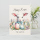 Tarjeta de felicitación de Pascua con un corderito y huevos de Pascua de colores pastel. El texto dice "Feliz Pascua". Personaliza con tu nombre. Personaliza la parte trasera de la tarjeta con tu propio mensaje, si lo deseas, junto con tu nombre.