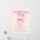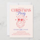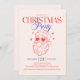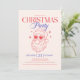 Retro Christmas party invitation with a fun Santa illustration wearing heart-shaped sunglasses and blowing a pink bubble, paired with bold typography and a modern color palette.
