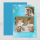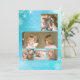 Esta tarjeta de vacaciones fotográfica presenta tus fotos y las palabras "Let it Snow" en una fuente de moda y copos de nieve contra un fondo de acuarela azul. La tarjeta tiene un fondo azul sólido en la parte posterior.