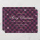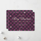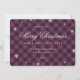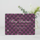 Tarjeta de vacaciones color púrpura con fondo de manto de búfalo morado adornado con copos de nieve y estrellas.
