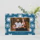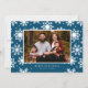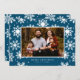 Tarjeta fotográfica con copos de nieve blancos grandes y espacio para una foto orientada al paisaje. Diseño elegante adecuado para días festivos y especialmente Navidad