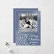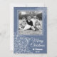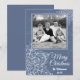 Celebre la temporada con esta tarjeta de Navidad con un diseño hermoso que presenta un fondo azul profundo adornado con intrincados copos de nieve blancos. El diseño elegante establece el tono perfecto invernal, y puede personalizarlo fácilmente con la foto de su familia para hacerlo único. Ideal para difundir la alegría de las fiestas con estilo, esta tarjeta es una forma atemporal y personal de enviar sus deseos festivos.