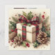 Captura el espíritu navideño rústico con esta tarjeta única cuadrada de una caja bonita envuelta con un lazo coqueto de cuadros rodeado de acebo y piñas. Se proporcionan plantillas con la imagen en el reverso.
