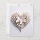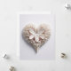 Corazón de papel blanco floral, con un toque de rojo, sobre un fondo blanco.