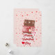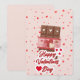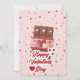 Mimá a tu media naranja con esta deliciosa y encantadora tarjeta de felicitación para el Día de San Valentín. El diseño presenta una deliciosa tableta de chocolate ilustrada con pequeños corazones blancos, envuelta en una banda decorativa rosa adornada con motivos de corazones rojos y crema.