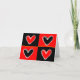 Una tarjeta de notas muy fresca y moderna para cualquier ocasión. Cuadrados rojos y negros con corazones artísticos rojos y negros. Personaliza el texto interno o deja en blanco para una nota escrita a mano, a alguien especial! Para ver más grandes productos, por favor visite mi tienda "The Hungarican Princess" en www.zazzle.com/hungaricanprincess*.