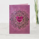 Inspirada en el diseño victoriano, esta tarjeta cuenta con un fondo profundo de rosa, unas complicadas papeletas y un corazón iluminado con suavidad para sostener el nombre de su San Valentín.