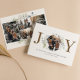 Esta es una tarjeta plana doble de Navidad alegre con tipografía moderna y vegetación de acuarela alrededor de una foto circular. Cuenta con 5 fotos en total. Fotos de prostooleh / Freepik.